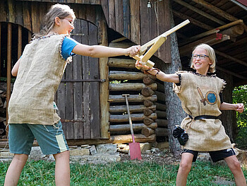 Gemeinsam tauchen wir in die Welt des Mittelalters ein. Wir beweisen als Ritterinnen und Ritter unser Geschick mit selbstgebauten Schwertern, verblüffen als Gaukelnde mit Kunststücken und basteln mittelalterliche Schmuckstücke. Vielleicht entdecken wir sogar einen Schatz bei einem Streifzug durch den nahegelegenen Wald. Die Mutigen unter uns können bei gutem Wetter sicher auch mal eine Nacht unter freiem Himmel schlafen.