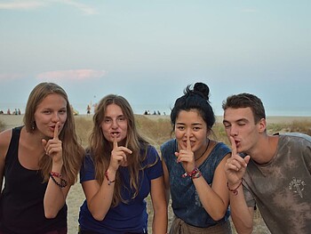 Nach Erreichen der Insel mit Bus und Fähre schlagen wir nur wenige Meter vom Meer entfernt an der Ostküste nördlich von Aleria unser Camp auf. Hier genießen wir das Meer und unseren Sommer. Am großen Sandstrand erwarten uns Beach-Volleyball, Strandolympiaden, Spiele, faulenzen, Abkühlungen im Meer, gemeinsames Einkaufen, Kochen und vieles mehr.