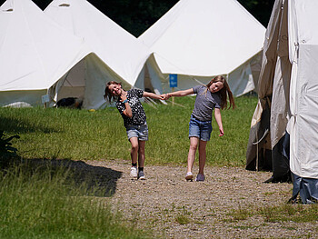 Nach unserer gemeinsamen Anreise mit dem Reisebus bauen wir hier unser Zirkuszelt und unsere Schlafzelte auf.