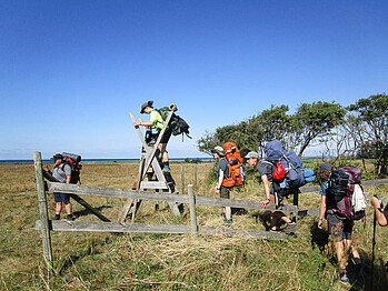 Von dort aus setzen wir mit der Fähre über den Øresund nach Schweden. Hier wirkt die Landschaft ganz anders – wilder und offener. Wir wandern entlang der Küste nach Norden, mal direkt am Meer barfuß durch den Sand, mal an steilen Klippen.