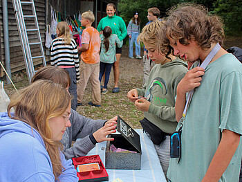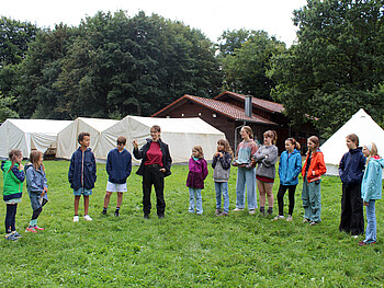 In Gemeinschaftsspielen wollen wir Wald und Zeltplatz unsicher machen oder am nahegelegenen Weiher baden gehen. Bevor du im Zelt schlafen gehst, besprechen wir deine Wünsche in der Stadtversammlung.